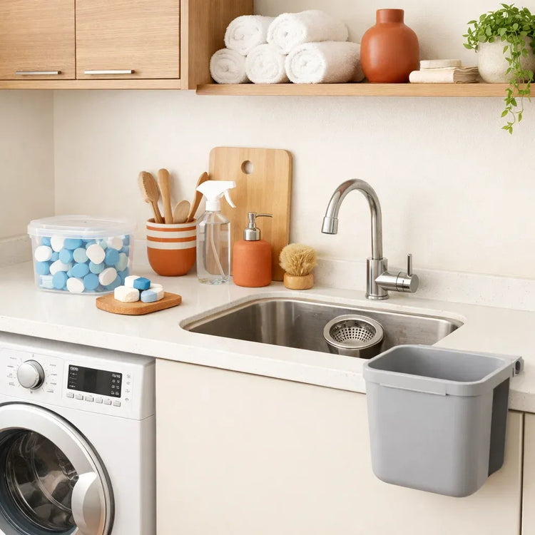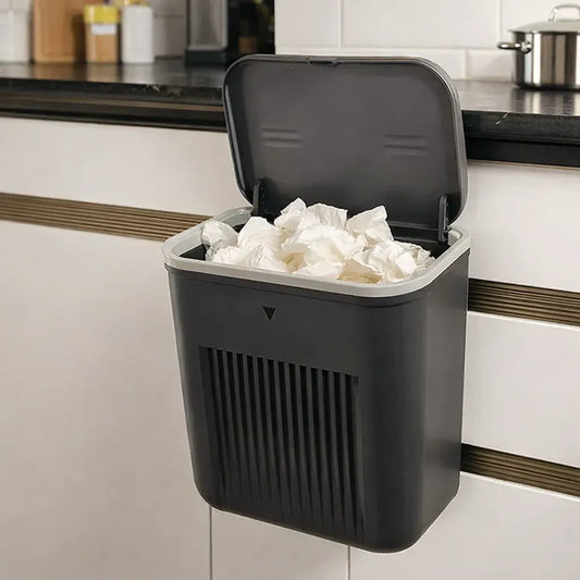 Lixeira de Cozinha Multiuso Suspensa 9 Litros Com Tampa e Suporte De Adesivos+Alça De Pendurar