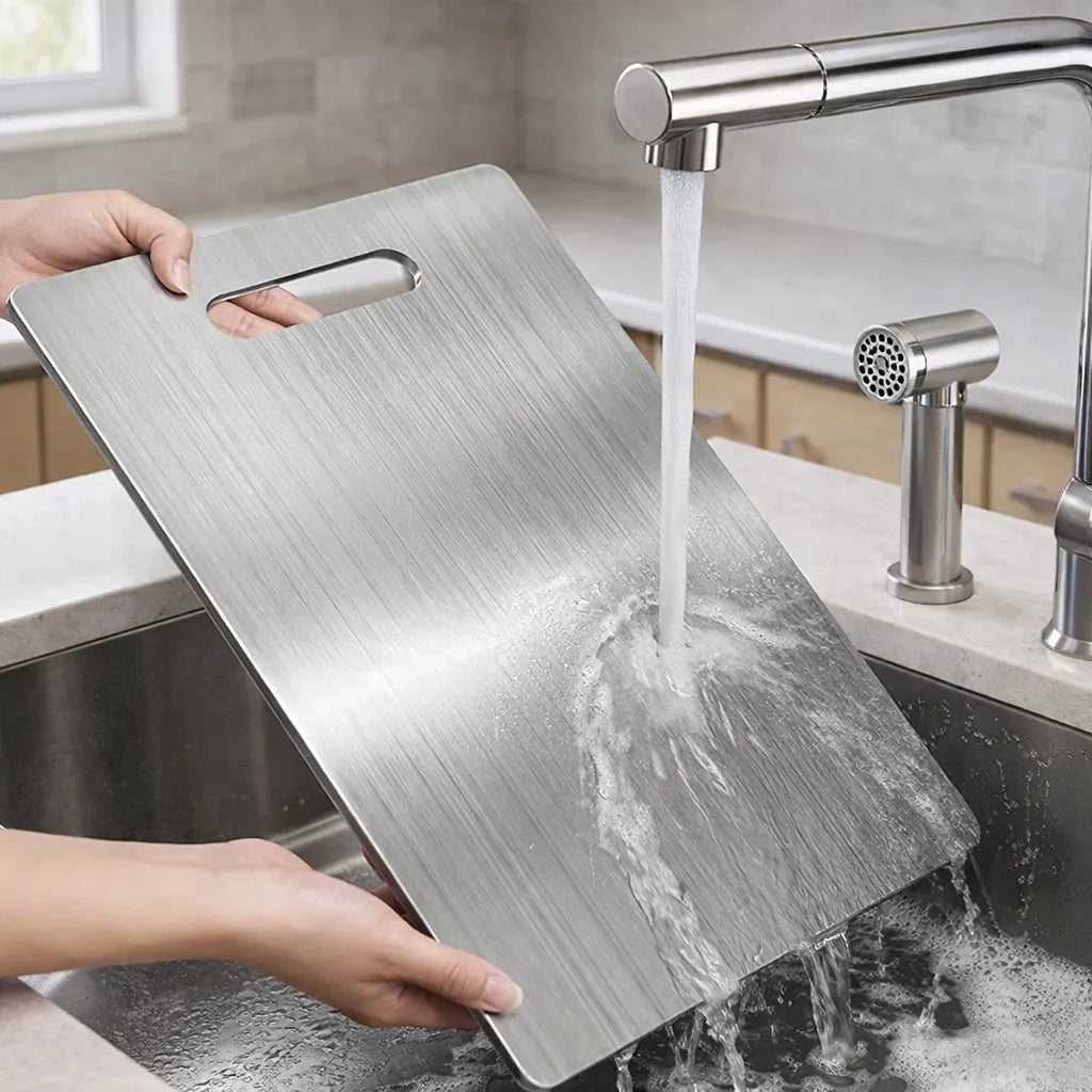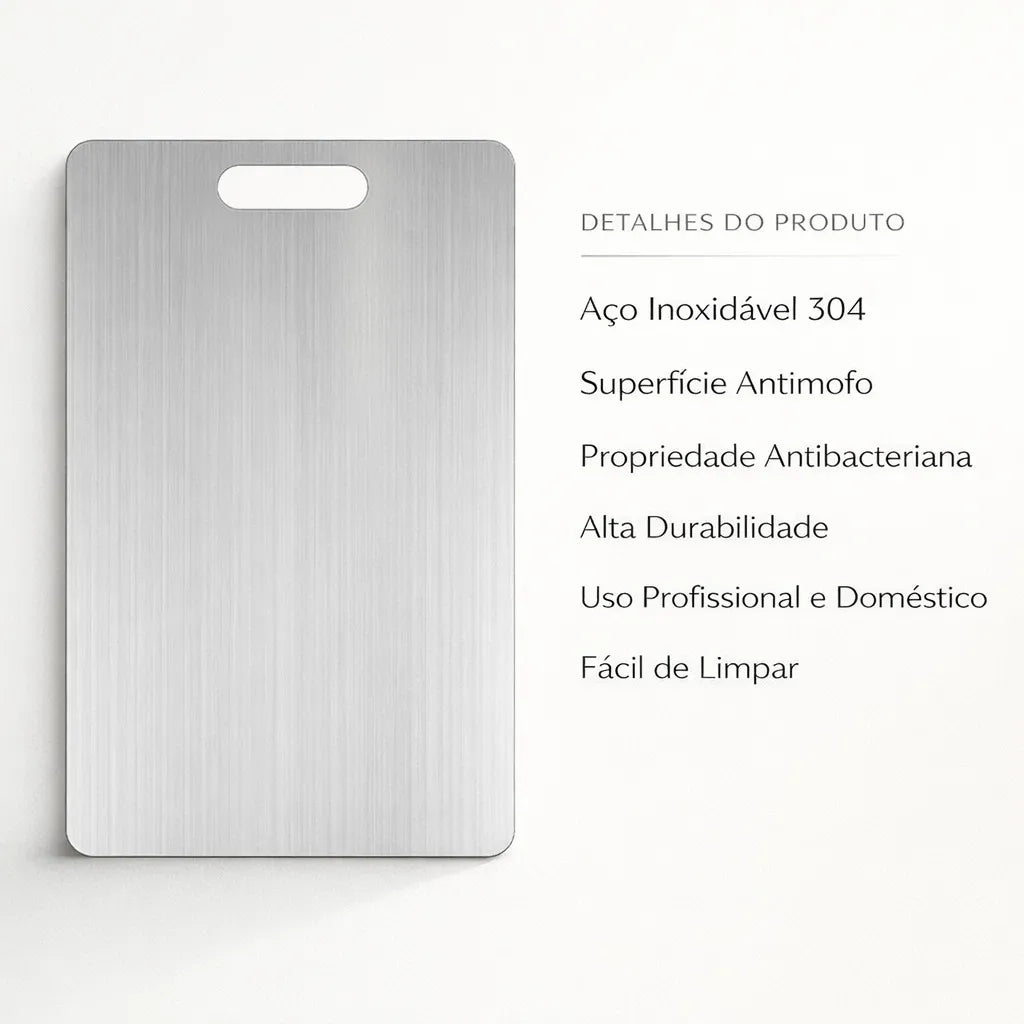 Tábua de Corte Profissional em Aço Inoxidável 304, Antimofo e Antibacteriano e Anti-Microplásticos